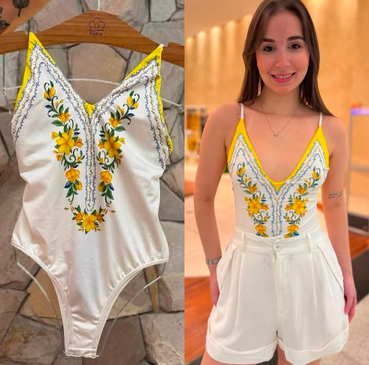 Feito de: 75,5% Poliamida / 24,5% Elastano / Forro 82% Poliester / 18% Elastano