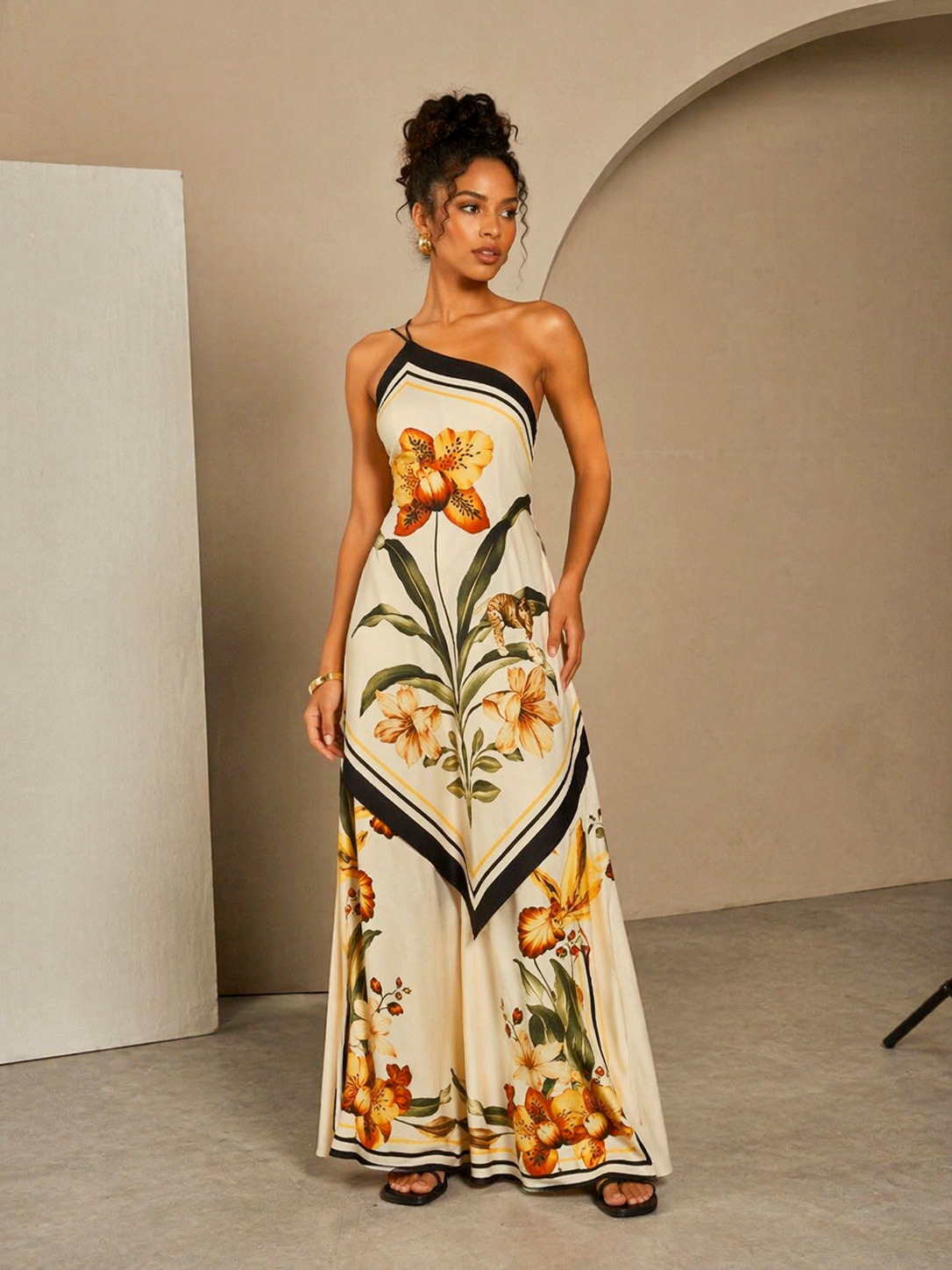 Com modelagem assimétrica, possui alças finas reguláveis e costas abertas com amarração, garantindo ajuste ao corpo e valorizando a silhueta com leveza. A calça pantalona traz movimento e elegância, proporcionando conforto e sofisticação em qualquer ocasião.