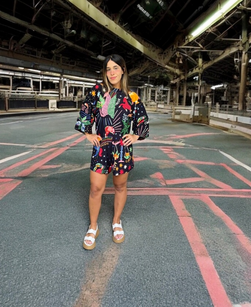 Estampas também podem apresentar pequenas diferenças de tonalidade nas cores; bem como, a posição do desenho das cores e estampas podem variar, conforme o corte da peça e tamanho.